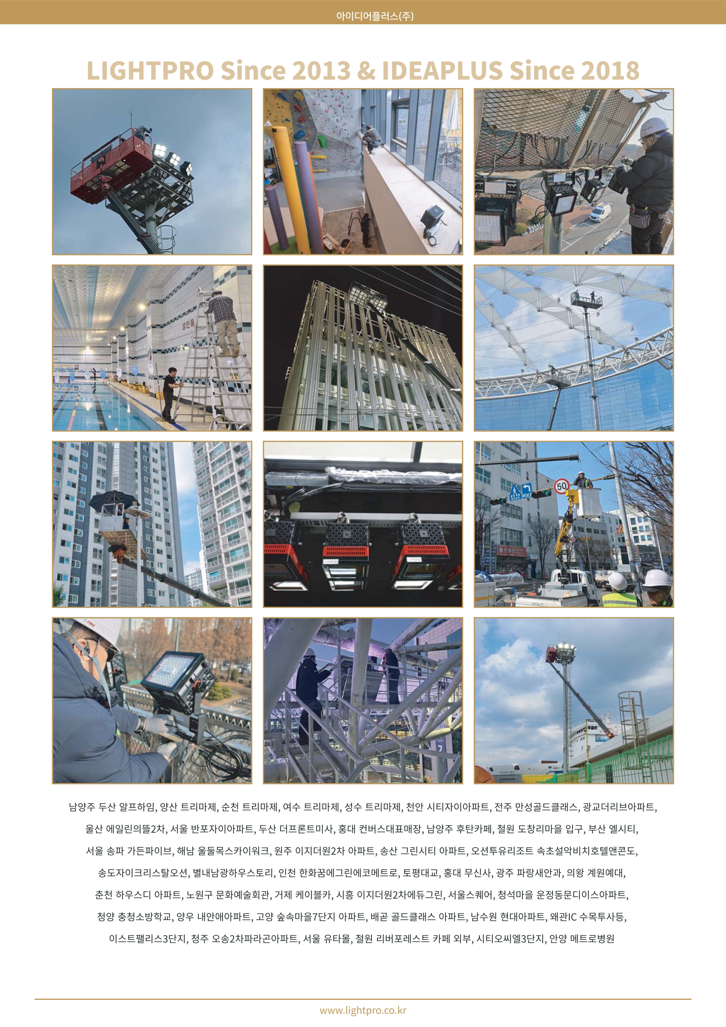라이트프로 전 제품은 방수/방진등급 IP68로 먼지와 물로부터 완벽하게 보호되며 수심 1M에서 1시간 동안 진행된 방수 시험을 통과한 우수한 방수 성능을 갖춘 제품입니다.